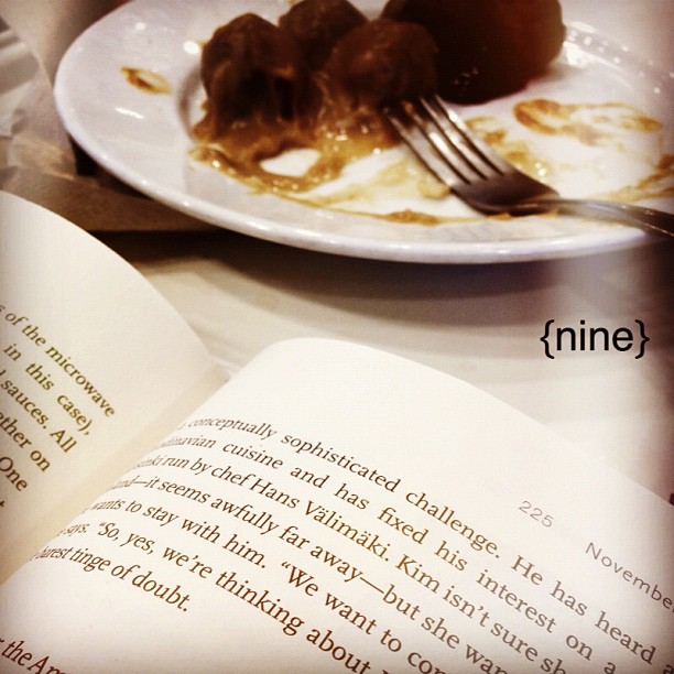 Two things that do find their way into the routines I create and destroy are reading + eating, preferably together. Every single day, I can honestly say that I stop to eat (no eating on the run, even though I do always have snacks in my purse) and stopping to read something. And we’re still working on adding more meatballs to that.