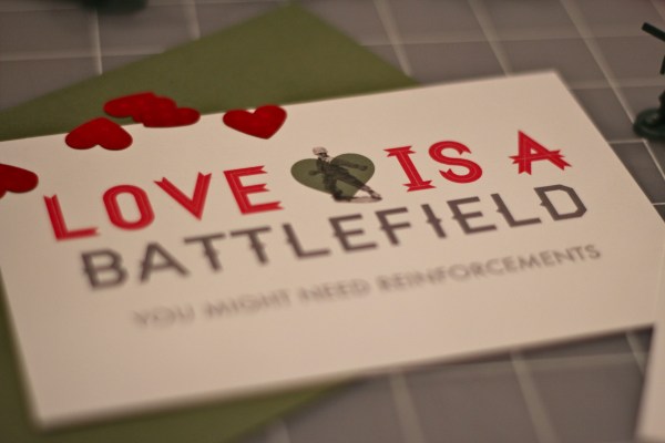 I sent them with one of the little army guys with a big red heart. Wouldn’t you like a little help navigating the battlefield of love?