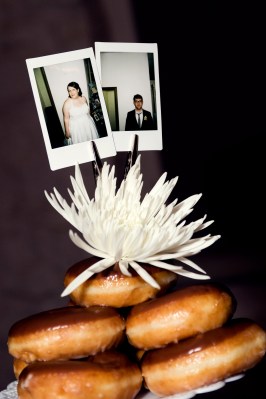 *That is our wedding cake above, made entirely of chocolate glazed doughnuts. Why? HAVE YOU NOT LEARNED YOUR LESSON? We don’t ask why!