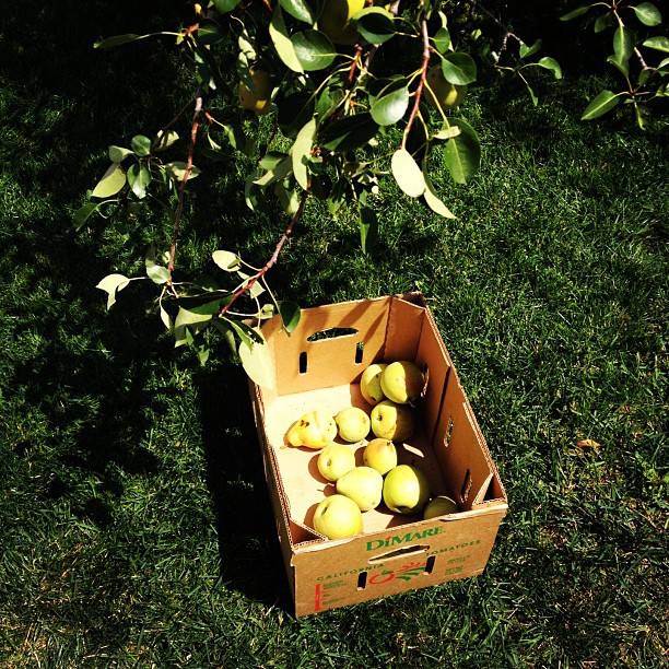 my glorious pear tree in the backyard that supposedly has five kinds of pears but no partridges and only currently half its pears because they are heading, without haste, into my mouth and the mouths of friends.