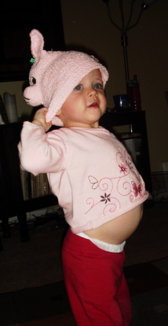 addison had a very big day. in celebration, she showed us her pig hat and her stomach, in equal measures.