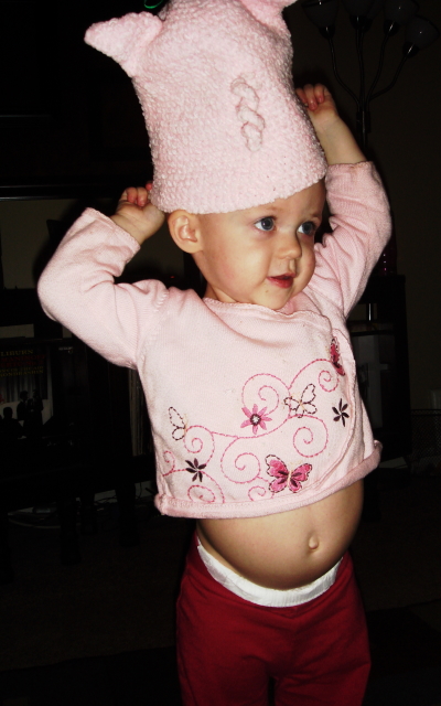 » addison with pig hat: two