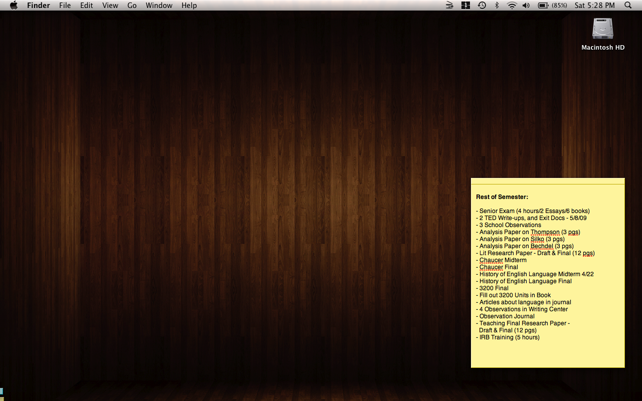 i thought it would make me feel better to write out every assignment i have due in the next [last] 4 weeks of the semester.