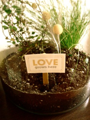 mr. bunjamin did need something to remind him of home, though, and the terrariums my mother and i built for the wedding centerpieces suit him just fine.  i’m hoping that our little love terrarium will fare better than most of the other plants i’ve systematically killed.