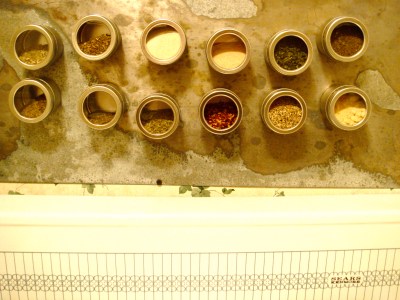 on a piece of paper is the key for what spice is what until we can procure some labels.  if i lose that piece of paper, feel free to decline any dinner invitation at my house in the near future.