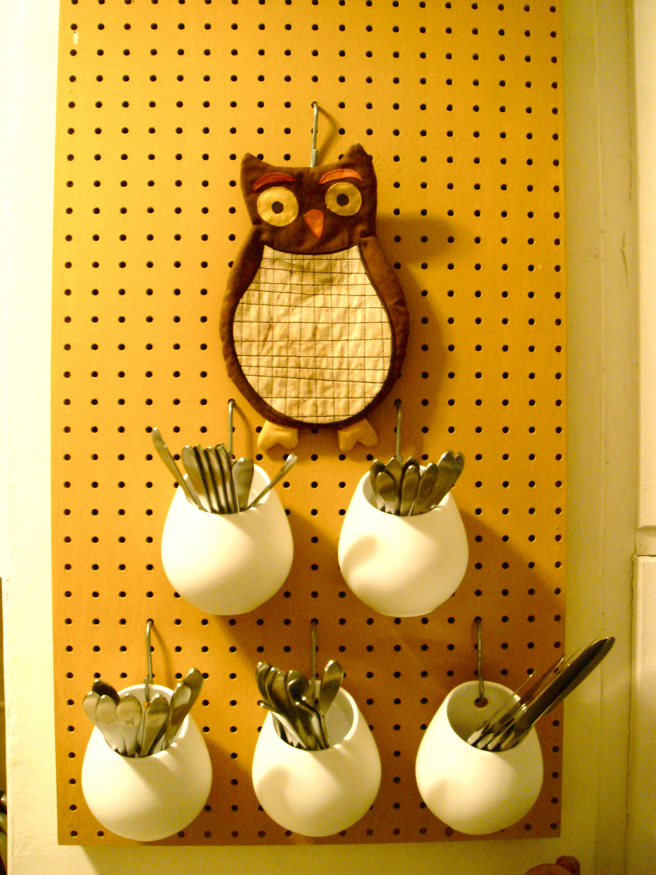 the mustard peg board was inspired from mrs. julia child, who had this large pegboard with outlines of various pots and pans on it.  i’m trying to absorb her cooking prowess and spirit by association with her kitchen design.  i’ll let you know how it goes.