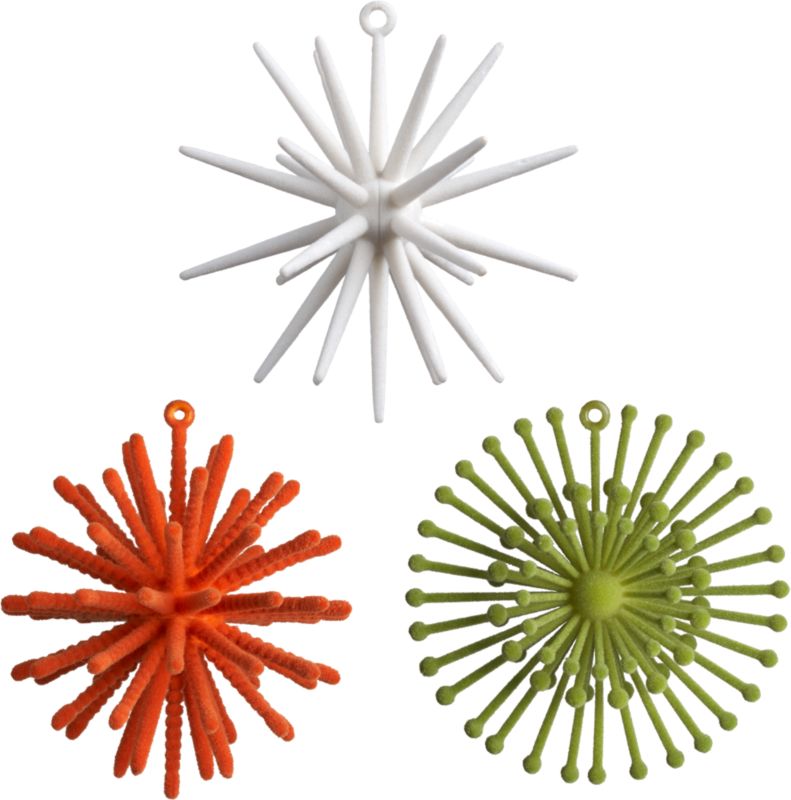 alas, i didn’t find any; however, while poking around online, i stumbled on the PERFECT decorations for this year from CB2: jetsons-inspired ornaments. en route to me are 8 of the white ones, to be hung in front of our grey curtains with crimson ribbon, and then the orange and green to adorn the tree.